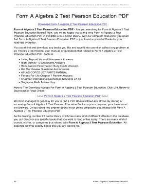 Free PDF Form A Algebra 2 Test Pearson Education Doc Library Genesis